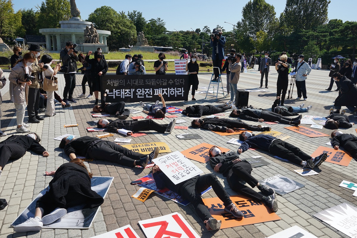 연대하고, 투쟁하고, 변화를 만들어온 기록이자 증거들입니다. 그런데 정부는 우리의 목소리를 무시하고, 우리가 만들어온 변화를 되돌리고, 처벌의 시대로 역행하려고 합니다. 우리는 처벌의 시대로 되돌아갈 수 없습니다. 우리가 싸워서 얻어낸 새로운 역사를 결코 포기하지 않을 것입니다. 우리는 정부의 퇴행을 끝까지 막을 것입니다."