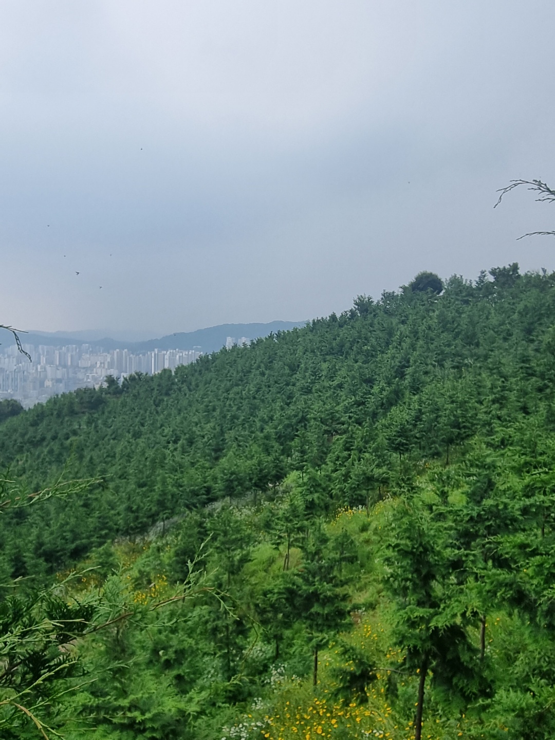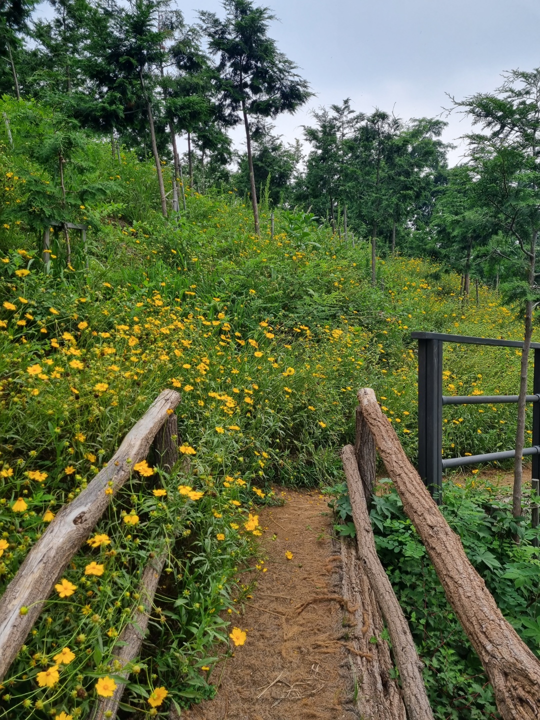 은평에 있는 봉산에 다녀왔습니다. 숲이 우거져서 뜨거운 태양을 피할 수 있었어요. 속도를 높이지 않고 꾸준히 걷는 동안 지금껏 몰랐던 서로의 소소한 이야기를 들을 수 있었습니다. 편백나무 숲에 만개한 금계국과 데이지 같은 꽃들 사이를 걸으면서 인생사진을 찍으며 행복한 시간을 가졌어요. 산에서 내려오는 길에 만난 소나기도 반가웠답니다. 비를 피하러 들어간 처마 밑에서 나눈 대화들, 잊지 못할 것 같아요.
