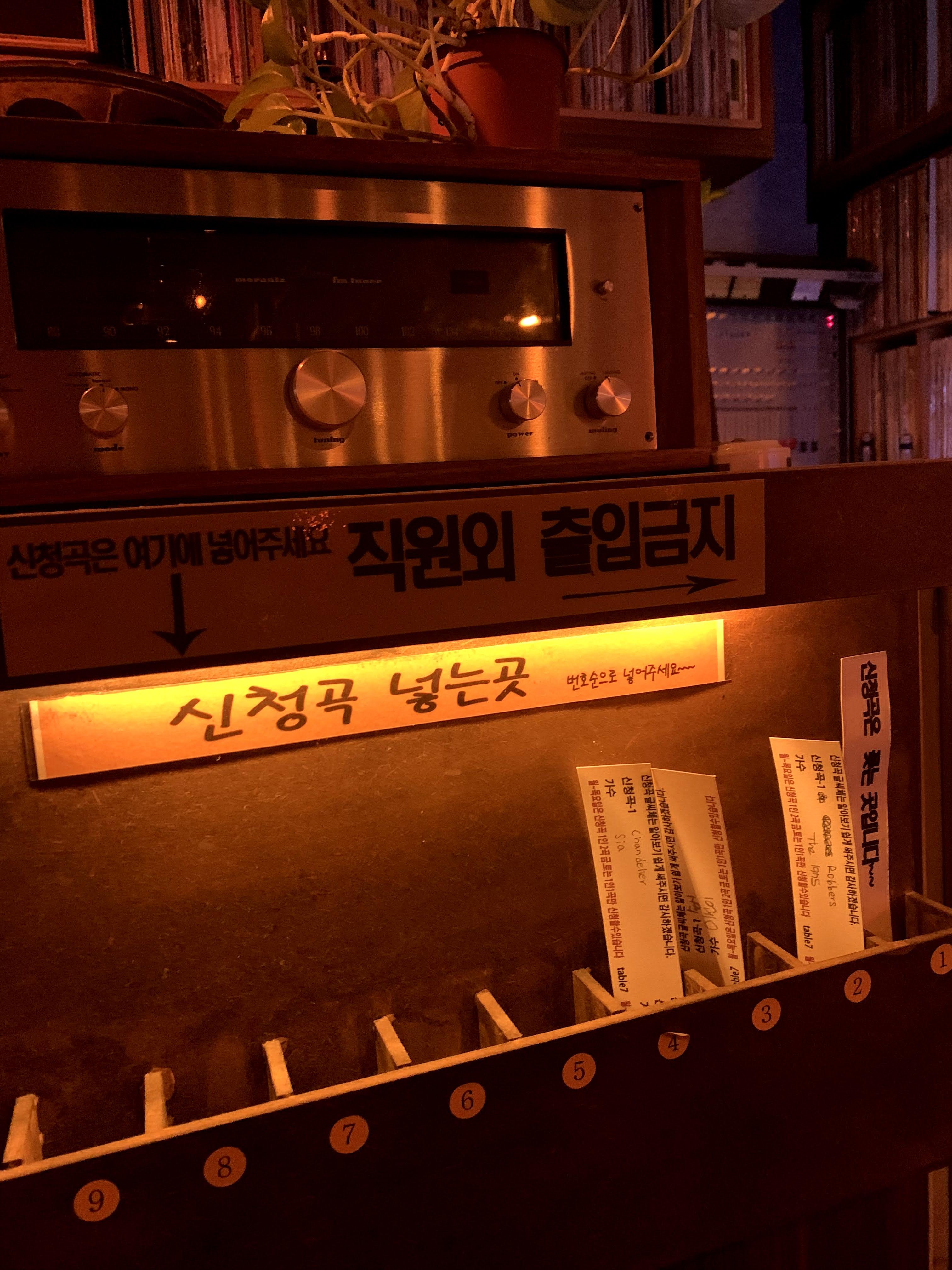 홍대 인근에 분위기가 기가막히게 좋은 LP바에 갔는데요. 훌륭한 음질로 오래된 팝음악부터 최신영화 음악까지 편안한 공연장에 온 것 같은 시간이었답니다. 서로의 취향에 반하고, 음악에 취하는 마법같은 곳이었습니다.