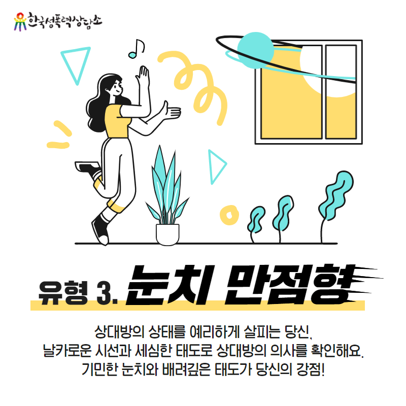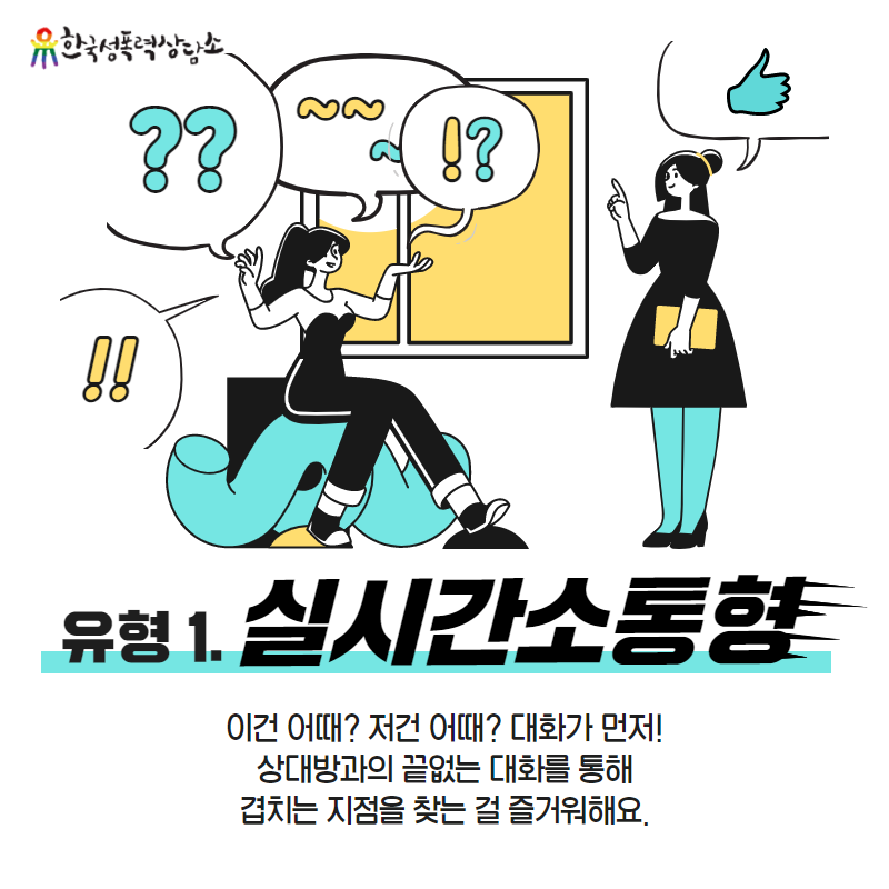 마지막 프로그램은 <나의 적극적합의 유형찾기> 였는데요, 평소에 내가 하던 적극적 합의의 과정 성향에 따라 네 가지 유형으로 나누었답니다. 아직도 링크는 열려있으니, 나의 유형이 궁금하신 분들은 한번 해보시고 나의 유형이 무엇인지 SNS에 알려주세요! 질문이 궁금하신 분들을 위해 질문도 슬쩍 공개할게요.