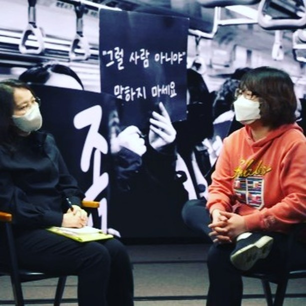 - 전국장애인차별철폐연대 지하철 선전전 참여 (하윤, 민지, 지안)